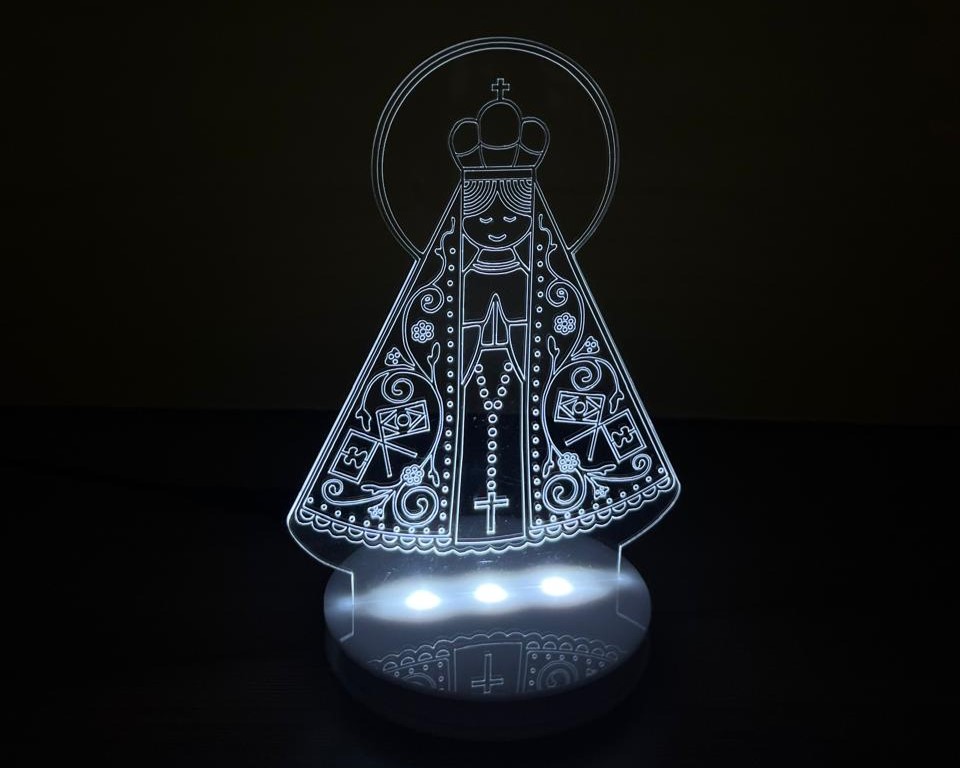 Lumianária abajur de acrílico com LED personalizado 3D Nossa Senhora Aparecida.