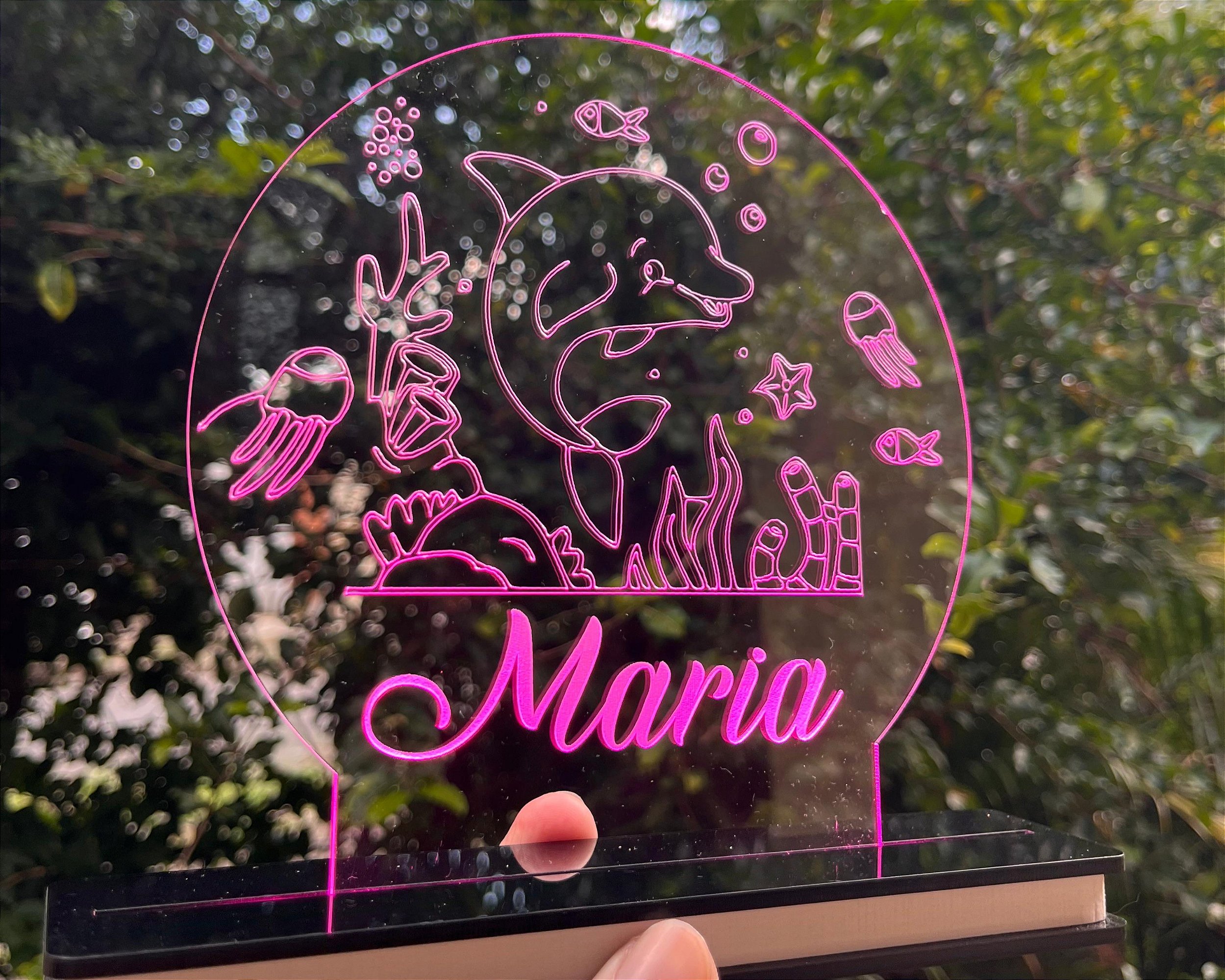 Lumianária abajur de acrílico com LED personalizado 3D golfinho.